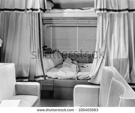 This was how my grandmother and I traveled. I really believe I was her favorite grandchild. At least, she told me so, made me dresses, let me visit summers and let me travel with her. I couldn't find a good photo without the logo on it so I hope I can use this. But we'd get in the beds, one top, one bottom. I think I got the upper once but I can remember both of us sleeping in the down compartment sometimes. I was a princess being treating by a queen. She was so good to me. I know she loved me a lot and I can hardly wait to meet her in the next world. I really loved her and my grandpa. We'd put our purses and clothes in a little stretchy rope thing by the window. And we never got treated improperly by any one else in the other compartment beds. We sat in them during the day, then at night the porters would come around and fix them into the beds. I simply cannot tell you what grand times we had. My grandfather worked for the railroad so she got free or very cheap fair when we traveled. Like I've said before, my father was overseas a lot so my mother and my brother and sister and I went to live with them in West Virginia, Ohio, Kentucky when we were young until he got through with that tour of duty overseas. I had great fun and the happiest times with my grandmother that I'd ever had.