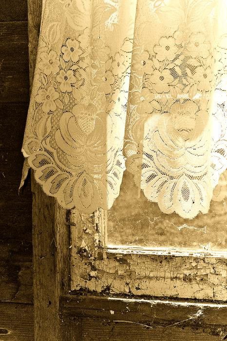 Just a bit of lace juxtaposed with peeling windows.