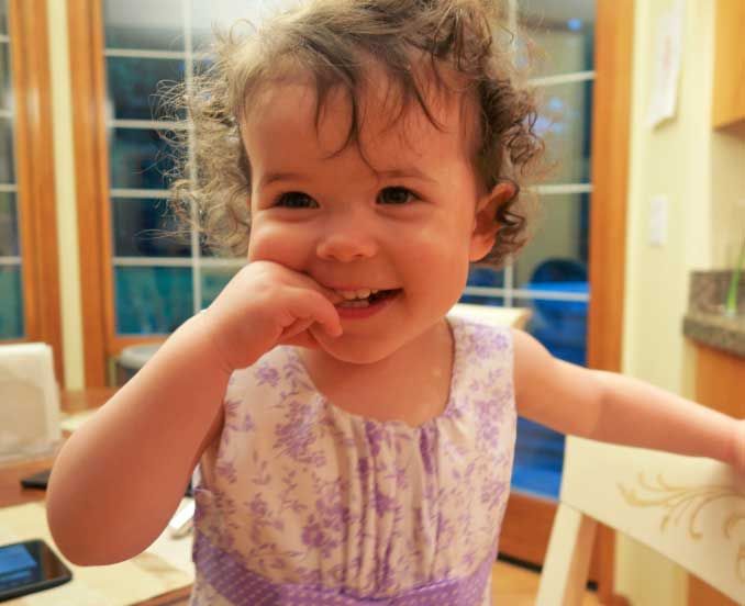This is Miss J with her pony tails. Her hair is so curly it looks short but it's getting long. The white splotches on the wall are different paint colors they're testing. The blue was on the walls of the family room when they moved in but it's gonna go real soon! The whole house will be painted along with all the woodwork trim and cabinets but it'll take them a couple of years I know because of having little munchkins around.