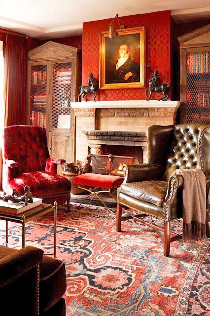 And my posts wouldn't be complete without some gorgeous images to view. I love this setting with a fireplace and 2 comfy chairs flanking it. Unfortunately, I can not be around anyone who smokes or a flame or I'd be a walking torch!