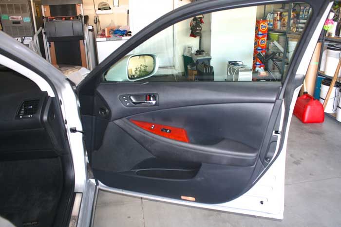 Here shows it on the console, steering wheel and the doors.
