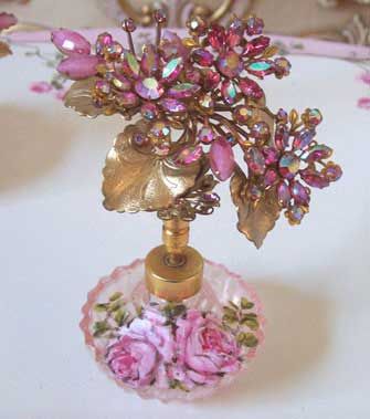 This side table holds a lot of things I've crafted myself. I don't do much anymore because our home is becoming overrun with it now. That little television is hooked up to our security system so we can see who comes to our door and choose whether to answer it or not. All those boxes under there have something in them. A great way to store things beautifully. I also wrap feather boas around some of my lamp shades. This is really a frou frou house. The pictures on this wall are a tribute to Susan Rios, my favorite painter I discovered in a picture gallery in San Jose, Ca. many years ago. I still buy her art to this day and hang it on my walls all over my home. I don't care at all what others think of my home. It's for me and my hubby. But I've yet found anyone who doesn't love the way it is and that includes men.