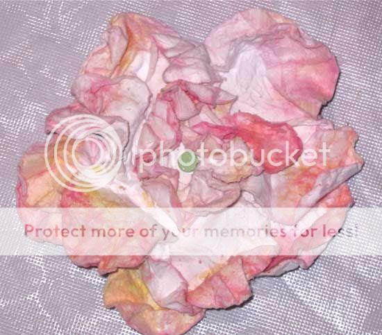 They are originally made with card stock and this is what I had on hand tonight; although, I did make some with coffee filters since I have a glut left over from making the roses. Do NOT try the coffee filter roses if you've had too much caffeine! It could be detrimental to your well being. Trust me on this one! Stick with these "scrunch flowers."