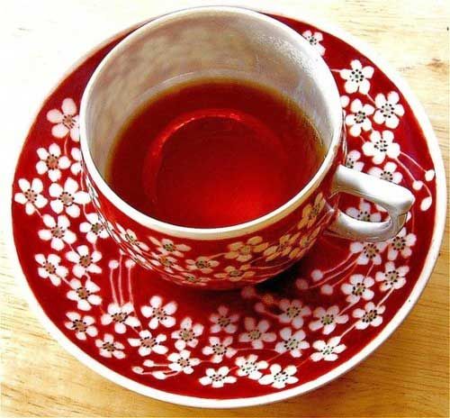 Sit and have a cup of tea while reading. Love the red cup and saucer and how it reflects the red of the tea.