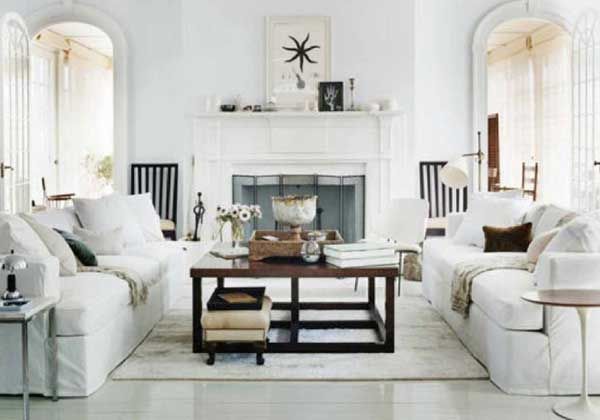 What stands out in this living room? The coffee table because it contrasts harshly with the white. While the room is gorgeous in white, the table takes center stage here. I'd have put a much prettier table there than a plain dark one. Looks out of place to me.