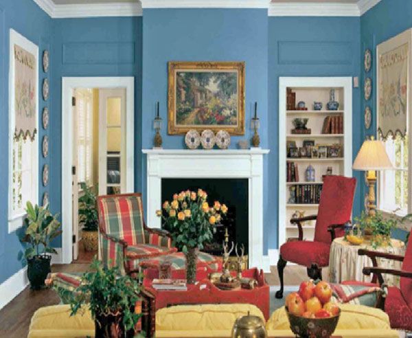 This looks beautiful with the colors of red, white and blue. A traditional living room with our country's colors.