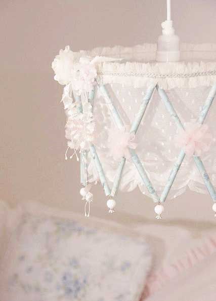 An adorable little drum-like hanging lantern done up very froufrou. It makes my heart drum enthusiastically!