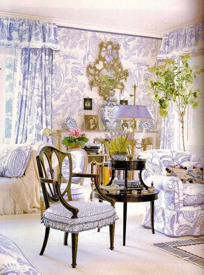 I love blue but not a huge fan of blue rooms. But this one is stunning. The color of blue and the weaving in of reds and pinks and yellows is truly magnificent, as are the walls.