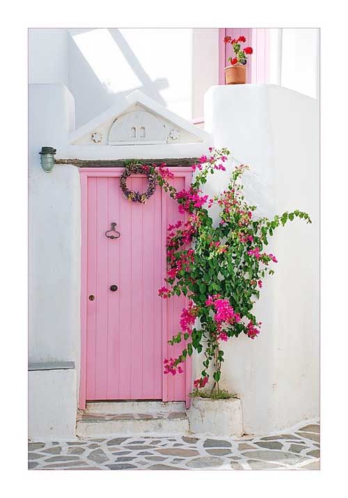 If it's white with bright pink or blue doors you know you're in Greece. What a gorgeous entry this is though.