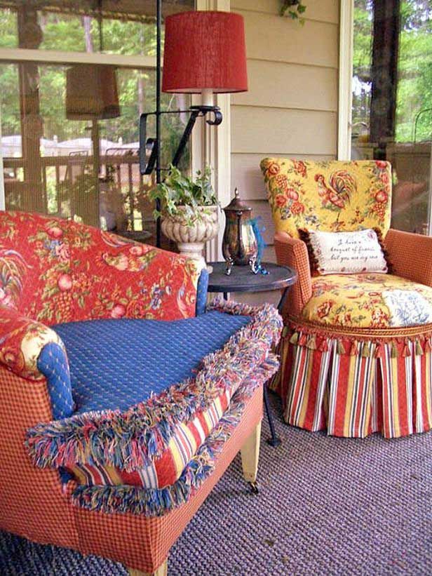 An adorable porch. Love the chairs but I'm sure they'd get dusty in this area.